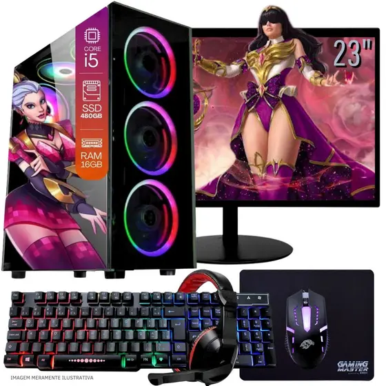 Computador PC Gamer Completo TOB Intel Core i5 SSD 480GB 16GB Teclado Mouse Mouse Pad e Headset Gamer Monitor 23 Windows 10 Pro Trial - TOB COMPUTERS